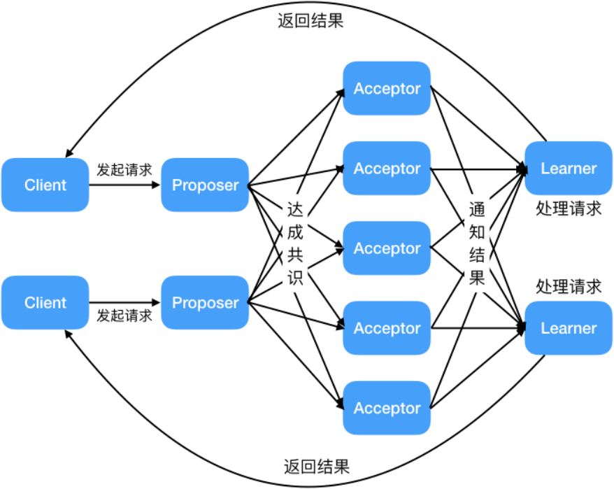 - 学习者(Learner):如果有超过半数接受者就某个提议达成了共识,那么学习者就需要接受这个提议,并就该提议作出运算,然后将运算结果返回给客户端。