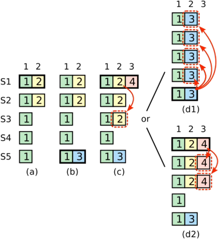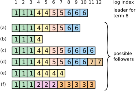 在此过程中,Leader 或 Follower 随时都有崩溃或缓慢的可能性,Raft 必须要在有宕机的情况下继续支持日志复制,并且保证每个副本日志顺序的一致,以保证复制状态机的实现。具体有三种可能: