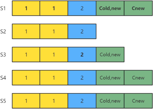 新 Leader 必须提交一条自己任期内的 no-op 日志,才能开始单节点集群成员变更。这样,S1 在当选新 Leader 后,就可以通过 no-op 把未提交的